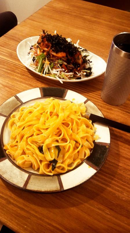 パスタ 冷凍ですが あと、サラダです! 梶山