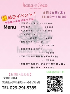 縁結びイベント開催決定! お得に!綺麗になりましょう! この機会に是非お待ちしております☆