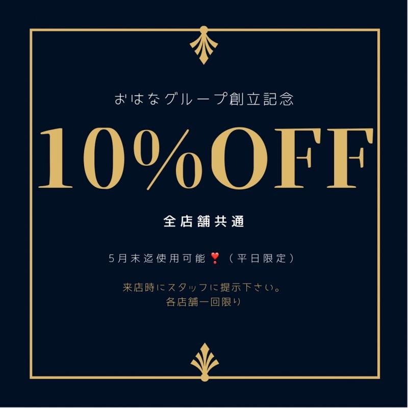 創立記念クーポン10%オフです! 平日限定になります!