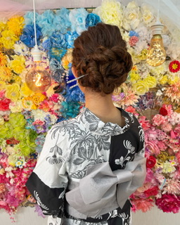 花火大会やお祭りが今年は開催されるのでヘアセット+浴衣着付けのメニューが人気です(^^)