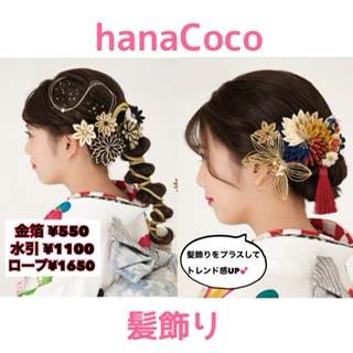 成人式ヘアで今流行りの水引やロープ、金箔もご用意しております!