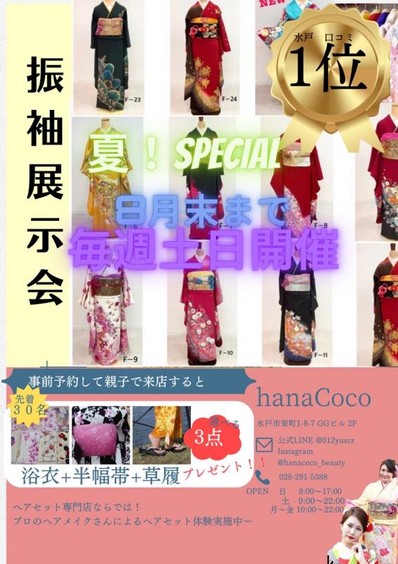 毎週、土曜日と日曜日は振袖展示会を開催しております!!