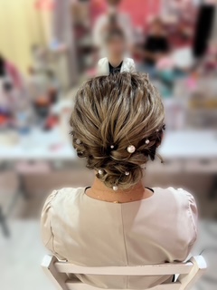 人気のゆるふわアップスタイル☆ パールピンをさすと より素敵な仕上がりになりますね♪