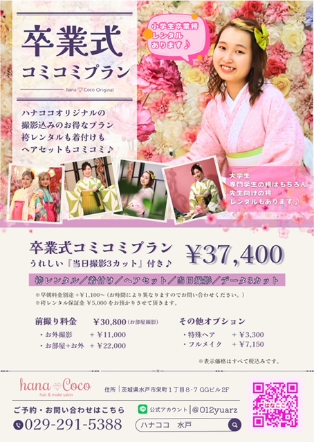 袴レンタル、ヘアセット、着付け、当日撮影、