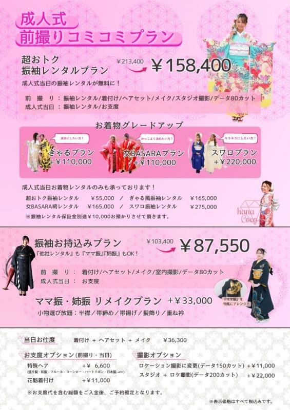 前撮りの振袖レンタル、ヘア、メイク、着付け、スタジオ撮影、データ80枚カット
