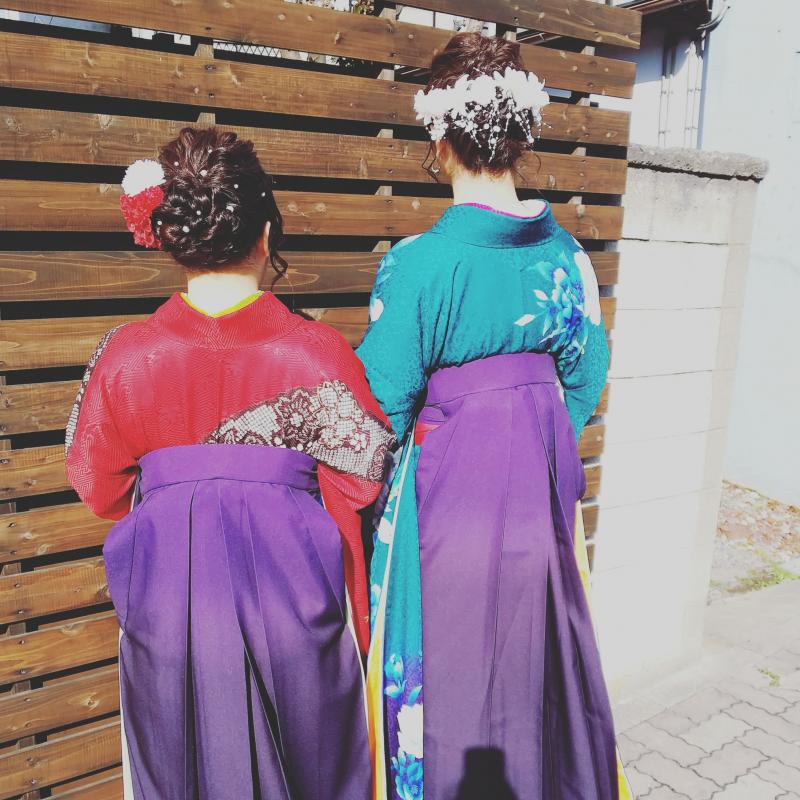 本日も早朝より袴着付けヘアメイク♪♪♪ hanaCoco店舗組出張組早朝から頑張っております( ´∀`)/~~ 卒業式って良いなぁ~d=(^o^)=b 皆様卒業旅行楽しんできてねー! 台湾の子☆おでんには気を付けて(笑)