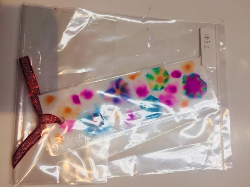 和紙に水性インクを描いて水をたらしてってシンプルな工程でしたが