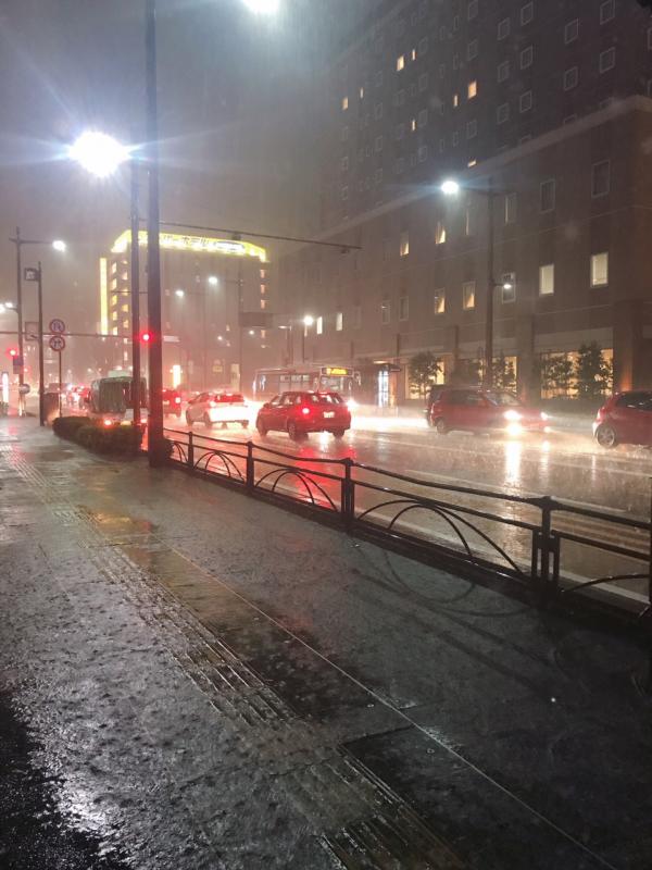 私はちょうど出勤のための高速バスの中でしたが、バスに打ち付ける雨の音と風の音が凄かったです。