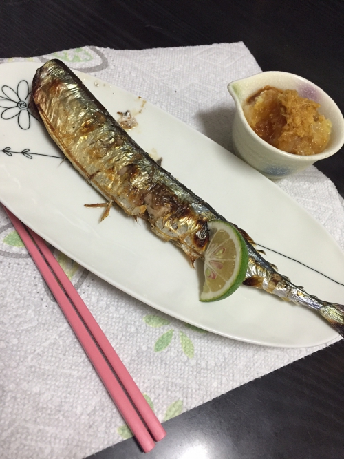 「秋刀魚は目黒に限る」(笑) 今年初めての秋刀魚〜♪( ´▽`) たっぷりの大根おろしと生姜で頂…