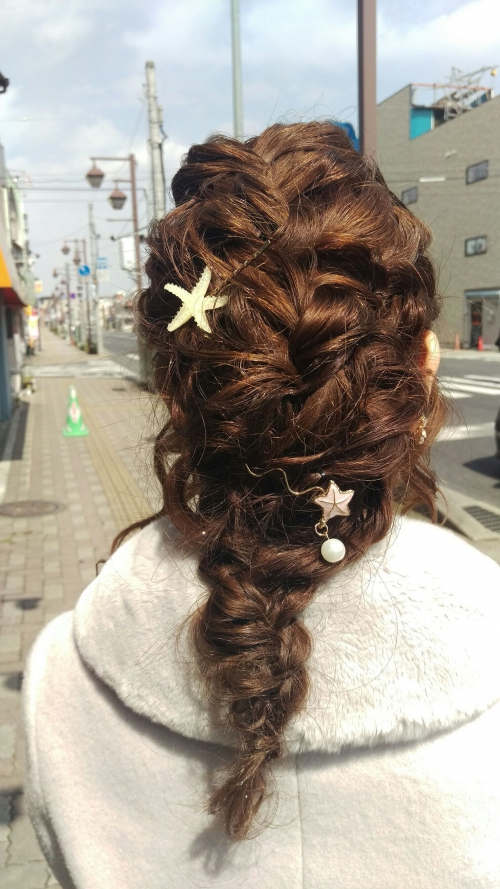 流行りのスターフィッシュを2つお買い上げ(’-’*)♪ 編み込みヘアー☆ 明日も早朝より営業~ 0292915…