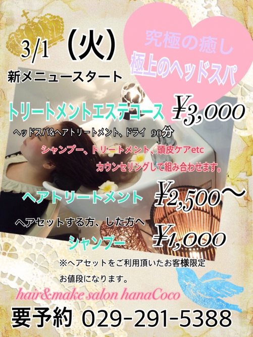 3月スタートしましたね! 本日から新メニュー開始 髪でお悩みのお客様ぜひお待ちして…