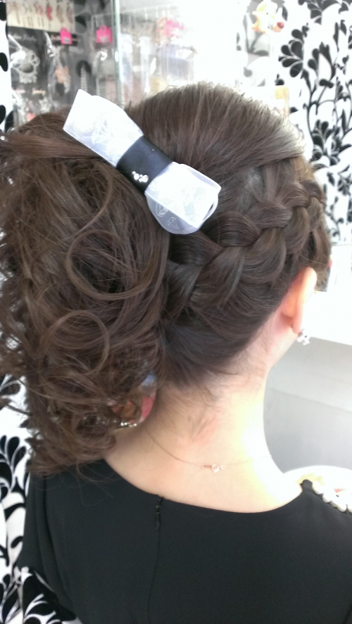 お客様の手作りのリボン☆ とっても素敵でした(*^^*) 編み込みを入れたサイドア…