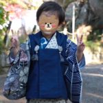 もう七五三シーズンも終わりますね 3歳男の子のレンタル着物、お被布が デニム生地で…