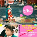 ☆七五三撮影激安プラン☆10月16日(日)12:00〜限定3組○撮影(データ100枚保証)30800円○着物レ…