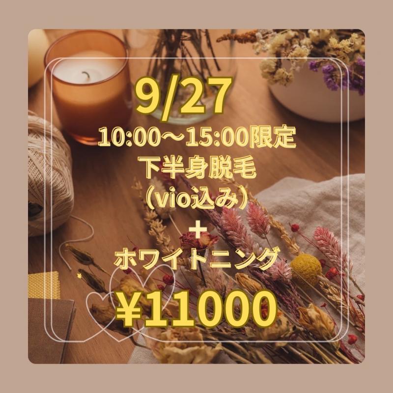【9/27(金)限定モニター特別価格】 下半身脱毛(VIO込み)とセルフホワイトニングがセットになったお得なクーポン! 通常24200円→11000円と50%オフ以上になっております♪