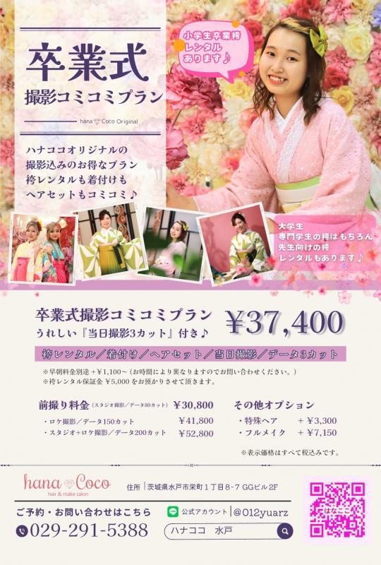 ハナココ水戸!卒業式撮影コミコミプラン! 029-291-5388 〒310-0064 茨城県水戸市栄町1丁目8‐7 GGビル2F 【営業時間】月~金:10時~22時 土:9時~22時 日祝:9時~17時