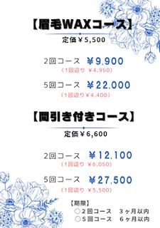 眉毛ワックスお得なコースございます!