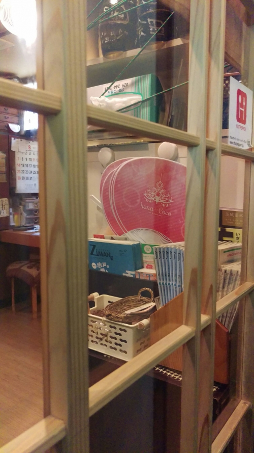 ハナココうちわー ご近所にある居酒屋【藤】入り口に置かせてもらっていまーす(・∀・)人(・∀・) お通しで出て…