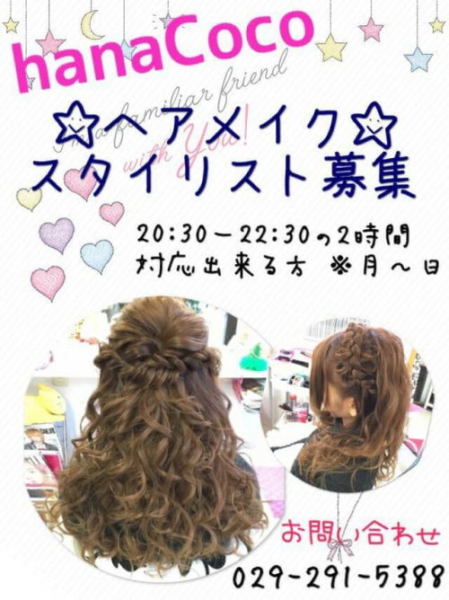 ヘアメイクさん大募集( ´ ▽ ` )ノ セットが苦手でも大丈夫! ハナココスタッフか一から教えます◎ 美容師…