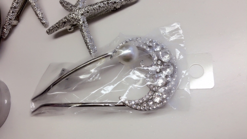 三日月の形の可愛い髪飾りあります! ブライダルや浴衣などに是非! 1800円になります &nbs…